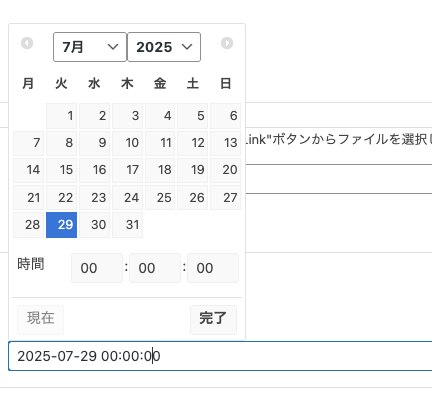 入力欄をクリックすると年月日時間を入力できます。