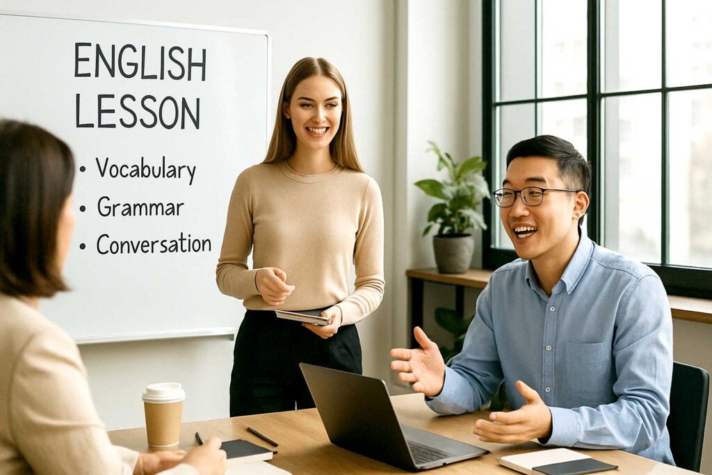 グローバルな人材育成を目指し、就業時間後に英会話講座を開講しています。全額会社負担で受講できます。